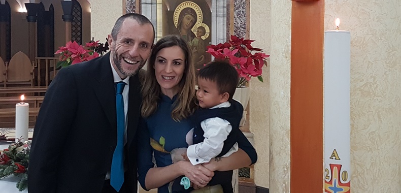 Tanti gli amici a festeggiare questo bel bimbo, dono di Dio venuto da lontano.