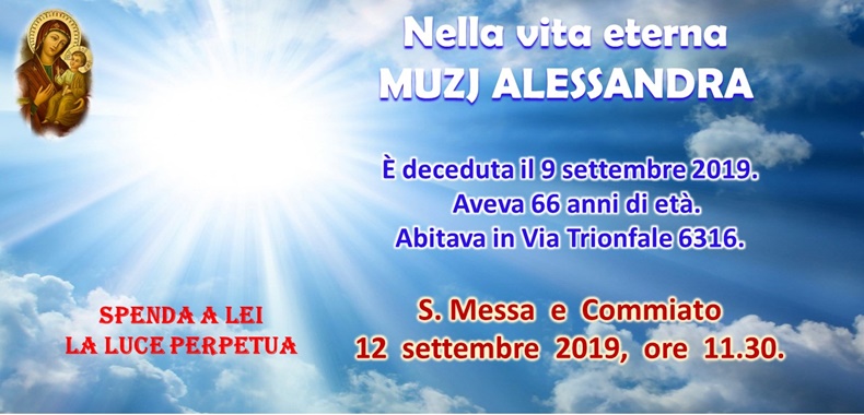 Il commiato cristiano sarà Giovedì 12 settembre alle ore 11.30.