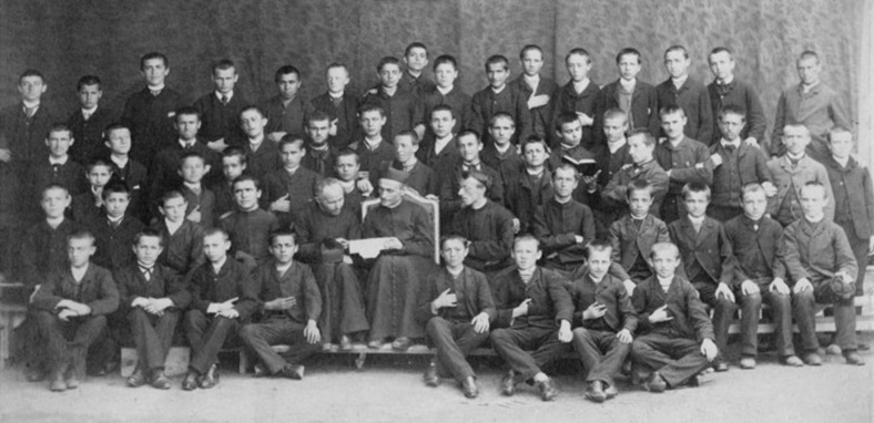 Si tratta di una delle prime foto di Don Luigi Orione. Risale al giugno del 1889, nel cortile dell’oratorio salesiano di Valdocco (Torino).