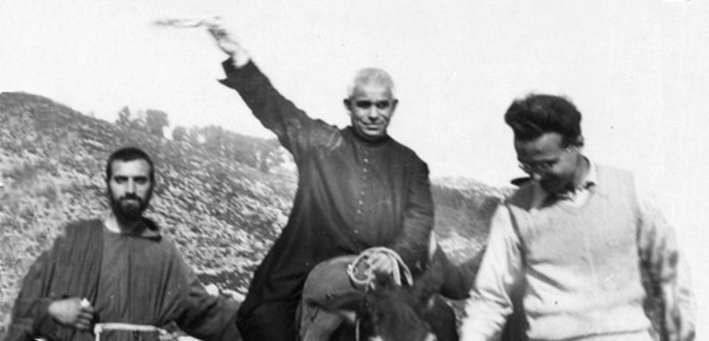 Una famosa foto di Don Orione a cavallo di un asino, scendendo dal Monte Soratte, a Roma.
